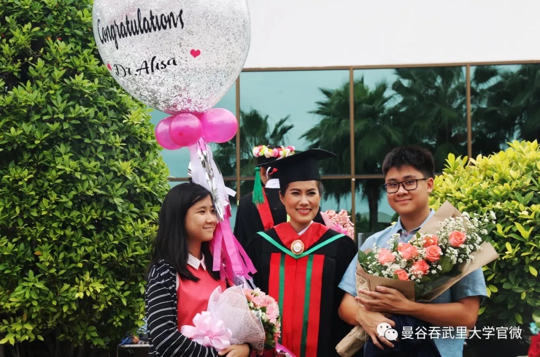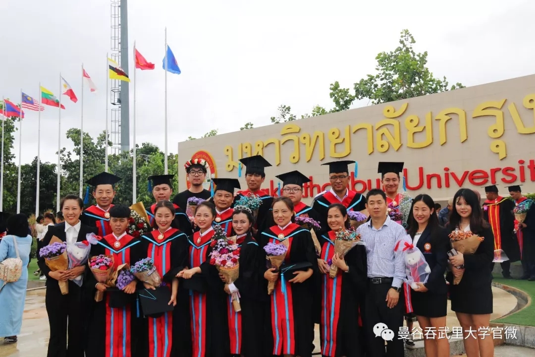 在毕业典礼上,中国留学生2018届毕业生特别吸引媒体关注,他们分别来自北京,山东,河南,广东,广西,云南等地区。经过不懈努力,同学们全部修满学分,顺利通过毕业论文答辩,如期毕业,成为曼谷吞武里大学首届中国留学生毕业生!他们是父母的骄傲,也是曼谷吞武里大学的骄傲!大部分同学将助力于中泰两国各大型企业,成为一带一路综合性优秀人才!而瑶族学生黄晶娴同学则继续留校攻读工商管理博士学位,硕博连读,规划其更美好的未来!