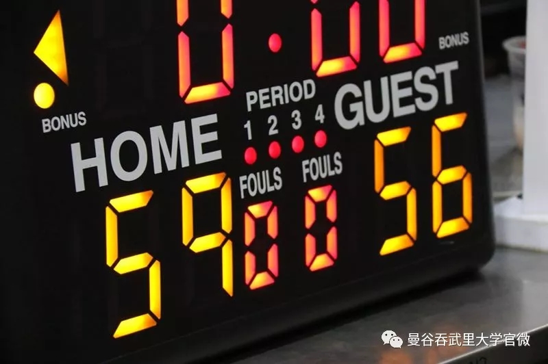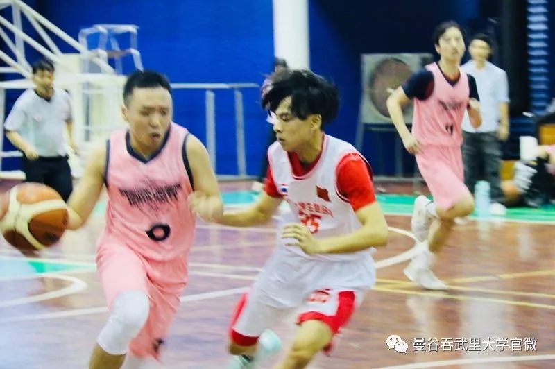 伴随着哨声的响起,现场的气氛急剧攀升,双方很快进入了激烈的角逐。曼谷 吞武里大学队员全力以赴,用心防守、有力阻挡,越战越勇,显示了他们极佳的心理素质。在场的同学也情绪高涨,摇旗呐喊,不时为队员打气、喝彩,气氛热烈。赛场上,双方拼抢很激烈,带球、运球、投篮等一系列动作潇洒,规范,赢得了场外师生的一阵阵喝彩。最后曼谷吞武里大学篮球队凭借精准的进球,几近完美的配合,以3分之差赢得比赛的胜利。