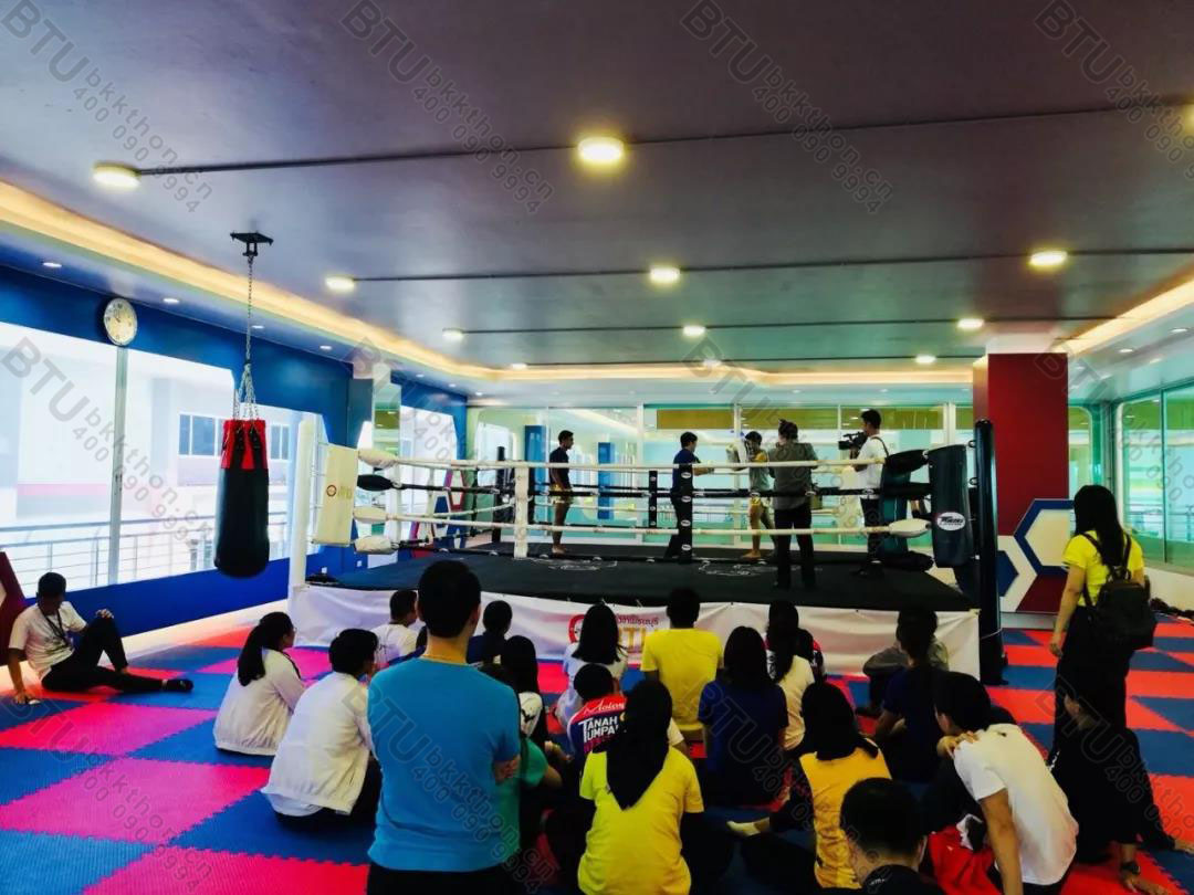 中国留学生与泰国学生一起展示泰拳的刚劲之美