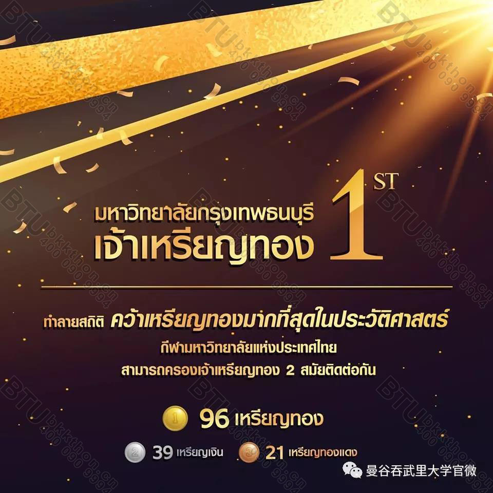 在国外,体育一直都是校园里最重要的组成部分。体育的强势,往往是增加学校知名度和吸引更优秀生源的最有效手段。曼谷吞武里大学在泰国大学生运动会上再夺殊荣,取得金牌榜总冠军!展现了本大学的教育成果,彰显了雄厚的办学实力!