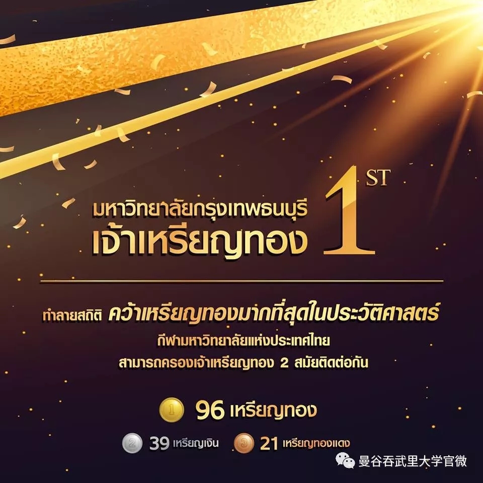 曼谷吞武里大学一直致力于体育教育和体育科学技术最前沿,注重在运动,运动技术,体育科学方面对学生的培养,在教育界享有盛誉!培养出大量的专业人才与高水平运动员。例如:羽毛球世界锦标赛冠军因达农,她14岁就获得了羽毛球世青赛女单冠军,刷新了世界羽坛最年轻世青赛冠军的纪录。她成为了泰国羽毛球“第一人”,被誉为“球后”。