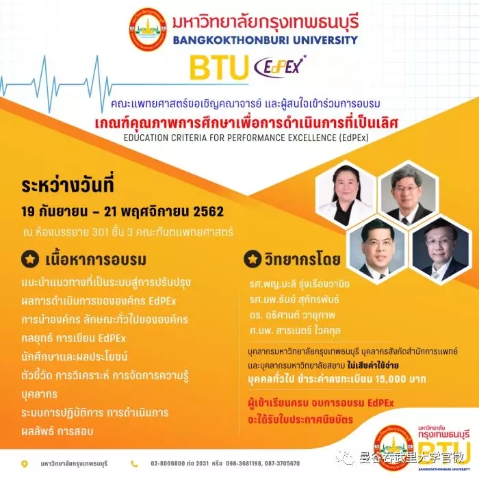 曼谷吞武里大学医学院诚意邀请有兴趣的人士参加培训计划,追求卓越的教育质量和绩效。