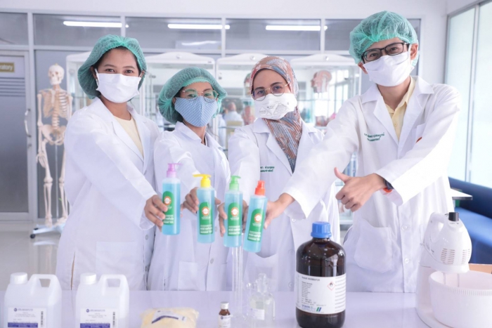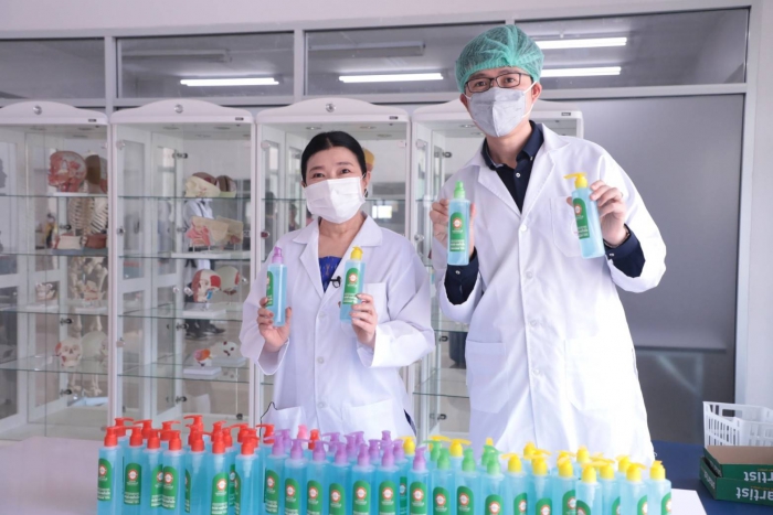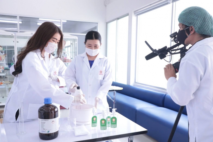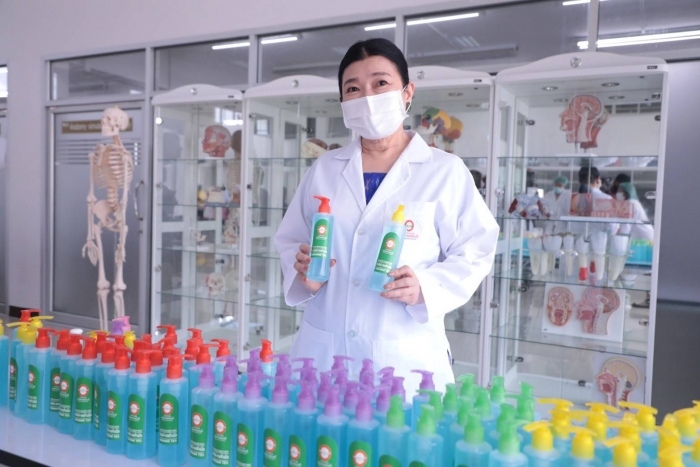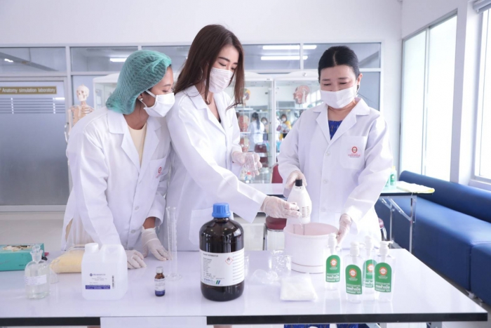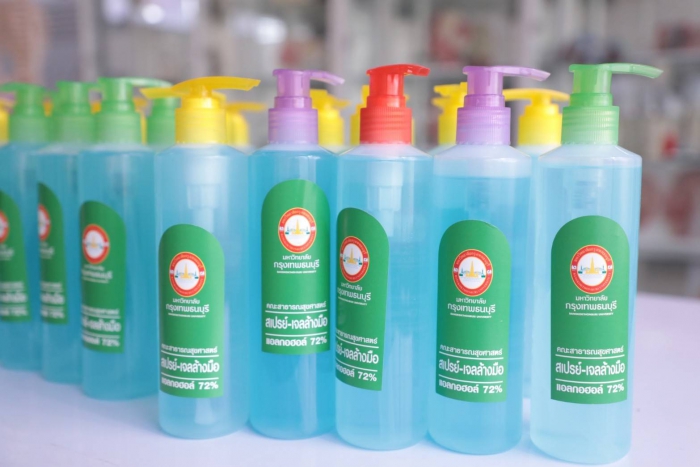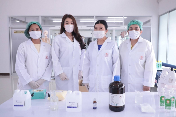 曼谷吞武里大学校长Bangor Benjathikun 与曼谷吞武里示范学校的院长,临床前健康科学中心的老师纳查·肖伦格朗先生(Khun Earn)一起 公共卫生学院 曼谷吞武里大学 参与演示酒精凝胶的生产,在分发给公众之前要洗手以供媒体观看 为了支持公共卫生,向人??们提供了防止covid-19病毒传播的工具,并开展了一场运动,以帮助人们保护自己和社会免受该病毒的传播,该大学和曼谷吞武里示范学校都设有根据学术机构对教育机构社会的使命支持社会的政策。除作为一项政策支持活动外,手洗酒精凝胶以分发给各个地区的人们,也将有助于减轻公共卫生工具的缺乏。用于分配酒精凝胶,洗手 公开面膜时,大学将给每个家庭1瓶酒精凝胶洗手,每个家庭面膜不超过6片,或使用1张身份证交换2个面膜,以向公众分发和共享 或尽可能多的家庭 哪所大学 将于2020年4月3日在曼谷吞武里大学前的全球院子中从17.00-19.00 hrs开始赠送酒精凝胶,洗手和细布口罩。可以在上述日期和时间免费获得但是,在第一轮中赠送酒精凝胶,洗手和口罩将没有儿童口罩。但是在下一轮,大学 将进一步增加生产量 分配足够的人员以满足需求 关于下一轮洗手用酒精凝胶的分布,大学要求人们在第二轮中使用同一瓶进行补充。哪所大学 将通过曼谷吞武里大学的页面再次向公众宣传 和曼谷吞武里示范学校