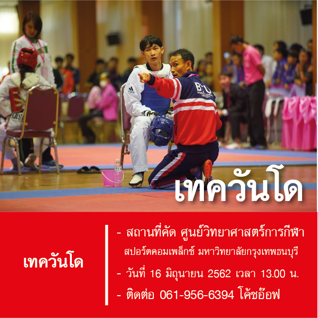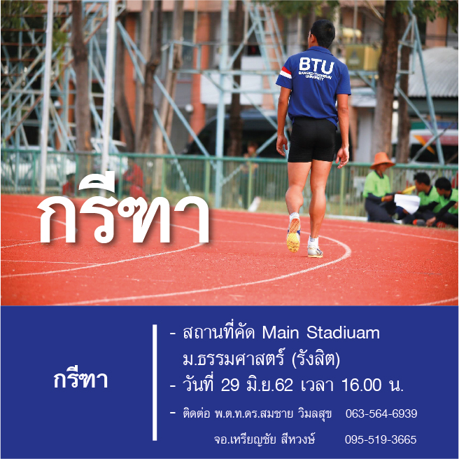 曼谷吞武里大学已决定选择各种运动项目的运动员。邀请有兴趣的人在指定的日期和时间加入曼谷吞武里大学。