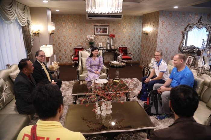 2019年9月8日下午400,由FISU世界大学锦标赛体育助理Fiona Testuz女士和FISU技术代表羽毛球代表Bastian Kruse先生率领的FISU世界大学锦标赛的高管会见了助理。曼谷吞武里大学校长Chayathikun 在检查位置之际,准备曼谷吞武里大学 主办了2020年泰国曼谷羽毛球FISU世界大学生锦标赛