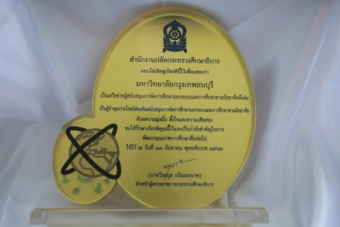 曼谷吞武里大学 获得荣誉奖杯 支持非正规和非正规教育的管理
