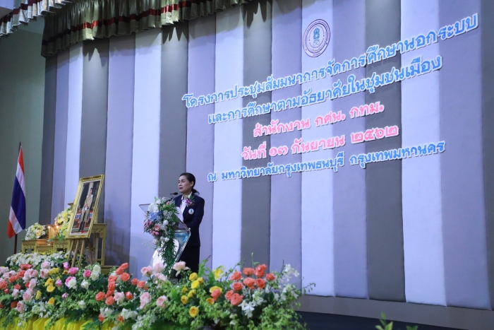 教育部副部长Kanokwan Wilawan博士 曼谷非正规和非正规教育办公室主持了关于城市社区非正规和非正规教育管理的研讨会的开幕式,并与柴勇教授教授一起为学校管理者和网络提供了保护盾牌学术事务副总裁 代表总统 曼谷吞武里大学 领取所述盾牌 为了纪念曼谷吞武里大学 作为大学 是支持非正式和非正式教育的杰出网络机构 并且是一所教育机构,它始终在运营中心大楼内以决心和牺牲来促进,支持非正规和非正式教育的管理 曼谷吞武里大学2楼酒店和旅游业,2019年9月13日。