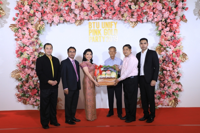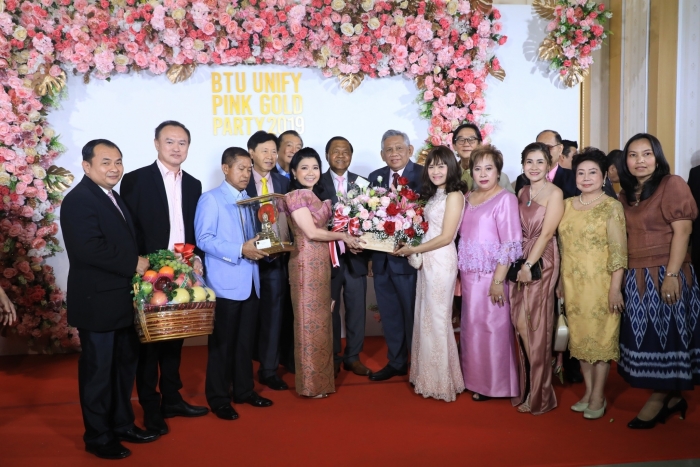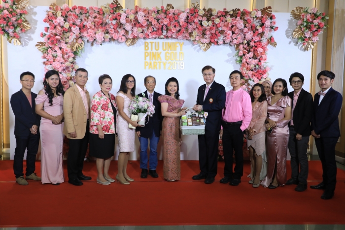 曼谷吞武里大学校长Bang Bang Ben Chatikun副教授 主持了“ BTU统一粉红金派对2019”的开幕式,这是建立良好关系和团结的传统。在大学的行政人员,教职员工之间 及附属机构 曼谷吞武里大学校长Bangon Benjathikul教授在这里为所有校友,名人,演员和嘉宾提供了机会,庆祝BTU的生日。