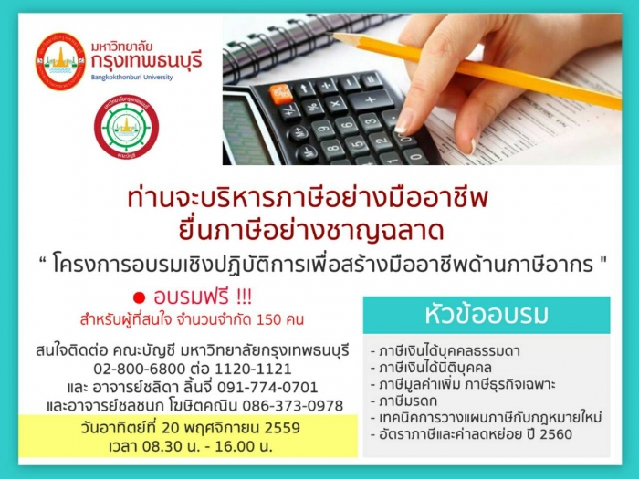 专业税务专业人士工作坊 由会计学院组织 曼谷吞武里大学 由税务局的著名发言人