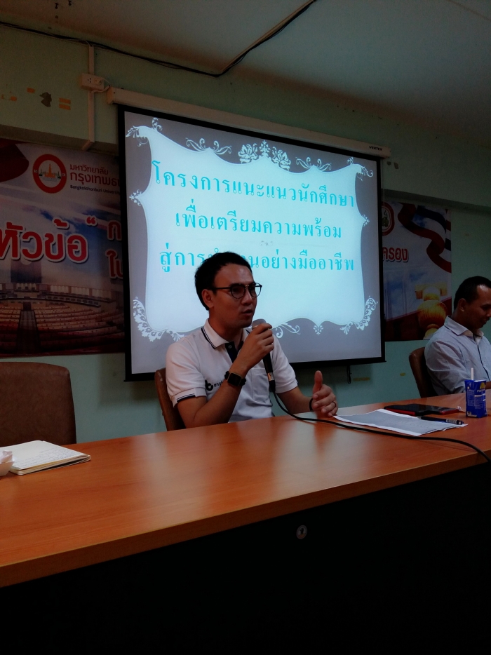 2017年2月20日,曼谷吞武里大学2楼都喜研究生院 人文学院 已组织了一个学生指导计划,以帮助您做好专业工作 即将毕业的四年级学生,由学生事务负责人的院长领导 由各学科负责人和讲师组成,人文学院的校友在每个职业中都取得了成功
