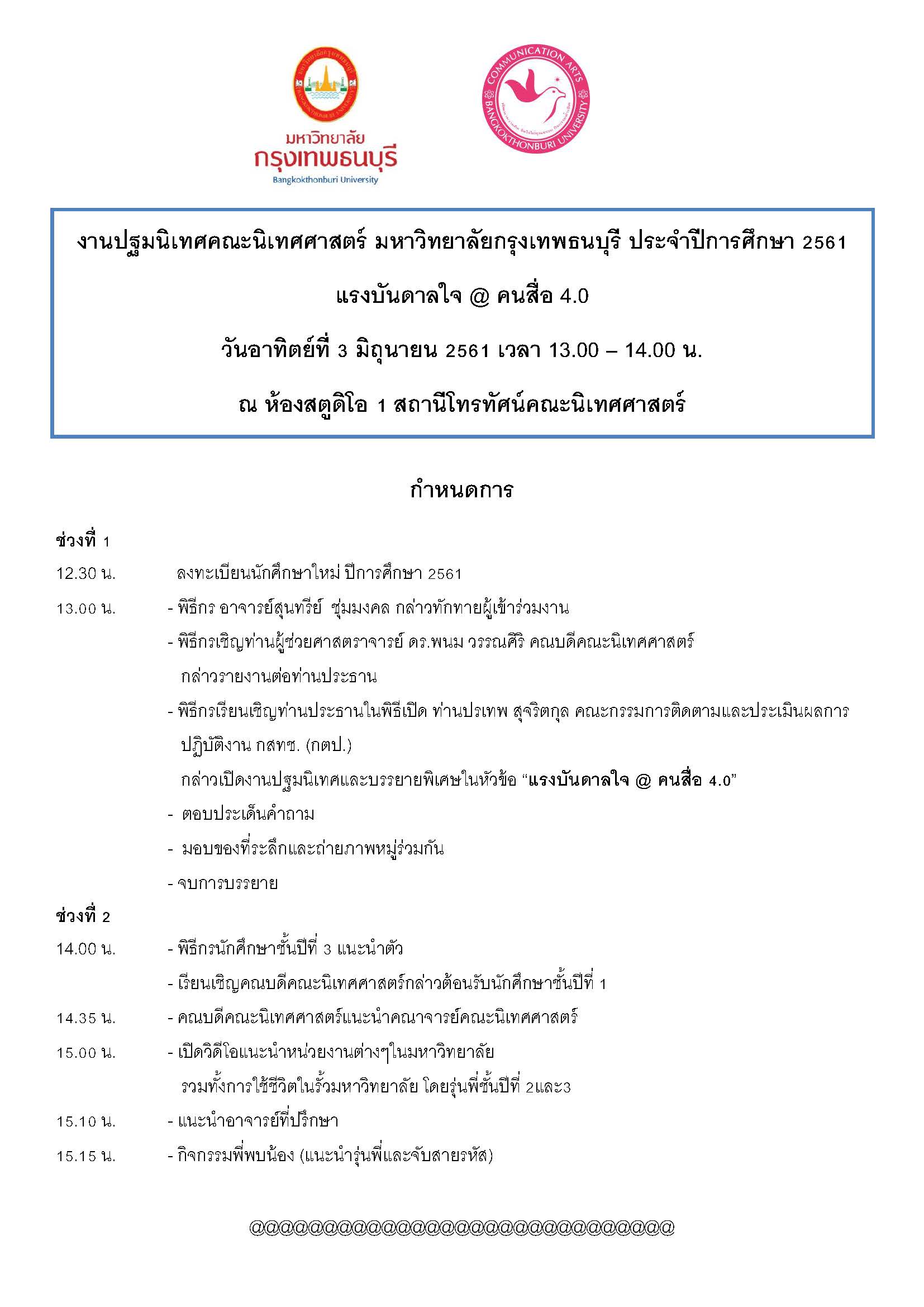 传播艺术学院 曼谷吞武里大学 举办迎新日,安排新的学习和特别讲座 灵感@ Media People 4.0