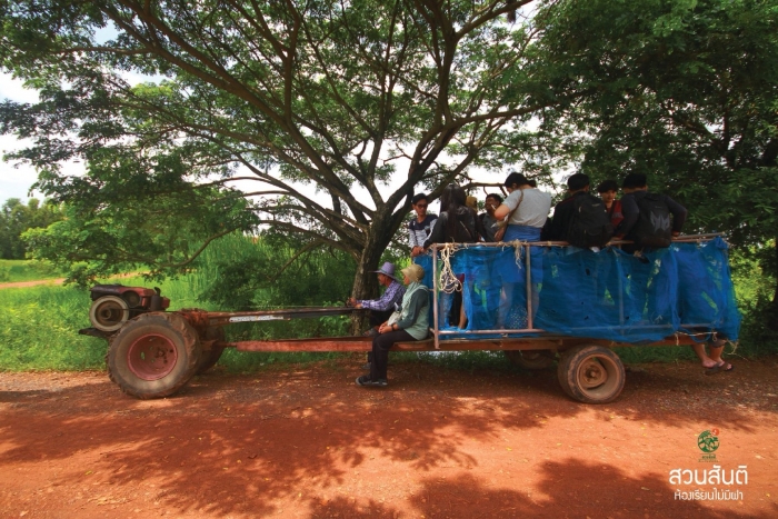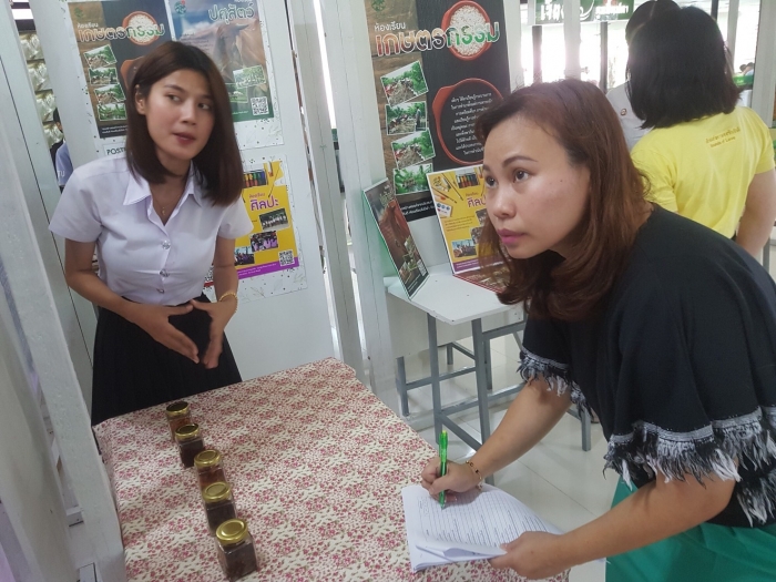 传播艺术学院 Bang Somboon首相对Prachin Buri省Suan Santi进行实地考察 UDD。村民和传播艺术学院学生的大学 共同为社区设计产品 并在东盟CC大楼展出