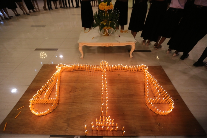 拜寺欢迎仪式 法学院,2015年8月31日, 星期一 ,曼谷吞武里大学BTU HALL