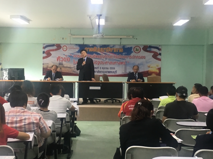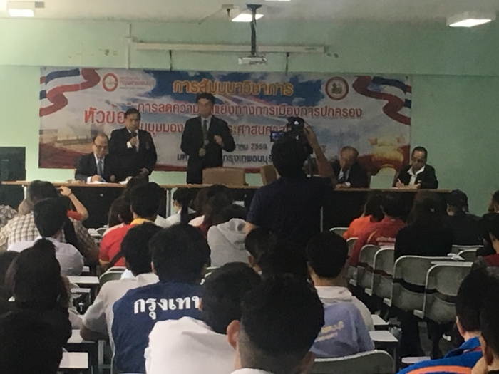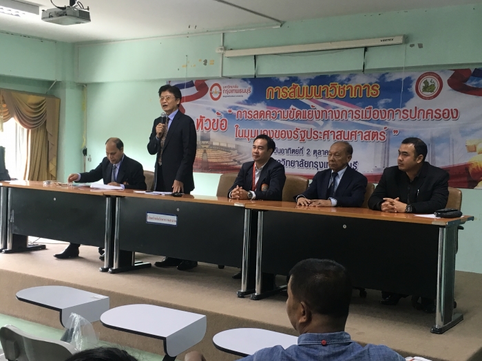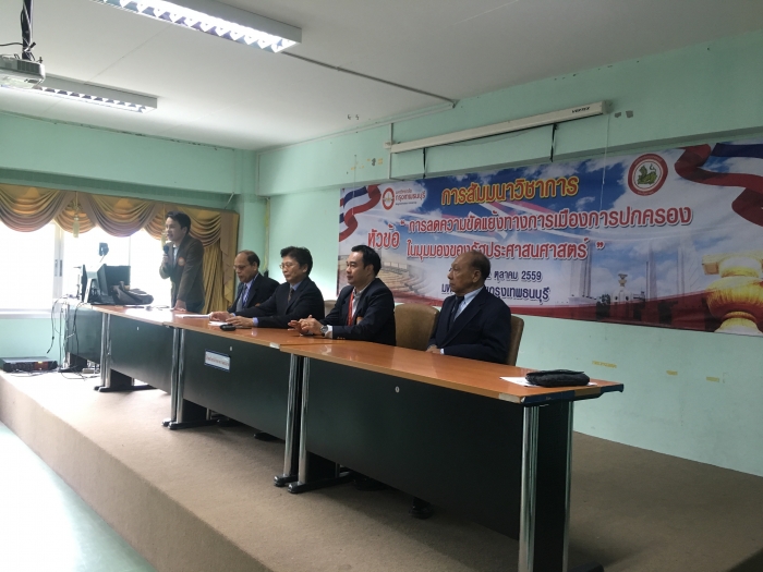 如今,冲突随时可能发生。当人类必须共同生活并且相互依赖时。有一个不同的成员工作组。冲突管理是一种可以创造性地,积极地产生良好而准确的结果的方法。从权力下放到社区的情况下,冲突可能在社区级别发生。因此,驱动农村人民为政治变革而战的力量 在抗议活动的主体推动下,改变了过去的抗议活动 在泰国社会中引起的冲突正面临着篡夺权力带来的更暴力冲突 和利益冲突 从公共行政角度看政治家,腐败等对减少政治冲突和行政管理的影响 使用负责监督社区福祉的当地社区领导者的角色。并具有密切面对当地冲突局势的作用 能够通过和解谈判解决冲突。没有偏见的听力过程 冲突的领导人在和平谈判中必须了解 并接受共同生活的规则 从公共行政的角度来看,减少政治冲突和行政管理必须有一个目标,那就是国家共同受益。通过结合农村社区的力量来推动泰国政治和政府的变革 通过寻找预防未来冲突的方法,消除了解决政治冲突的过程中的教训 与司法部的合作 以及社区中的司法程序,因此,必须避免减少政治冲突和由各方控制冲突。和解是各方避免冲突的满意度。通过妥协各方必须牺牲 由于上述原因 政治学系 因此,要求批准一项旨在减少政治冲突和治理的项目 公共行政 旨在学习和加强减少政治冲突和治理,以推动社会和组织实现稳定和可持续的目标。