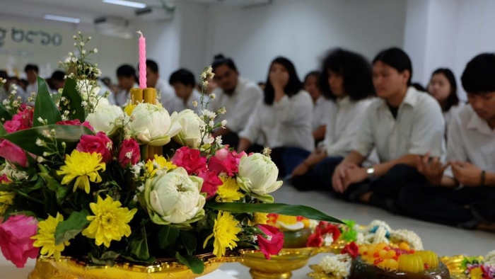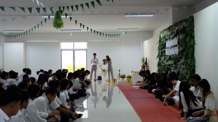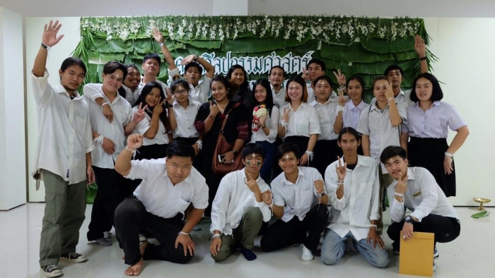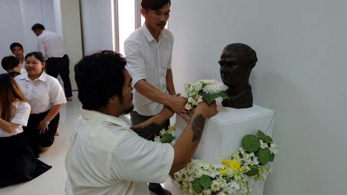 美术学院 曼谷吞武里大学 举办敬礼仪式 并在美术学院取得成就 发财 由于新的艺术学院大楼的搬迁 扩大领域,使其更适合学生作品创作