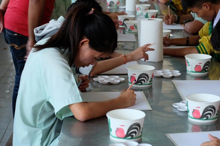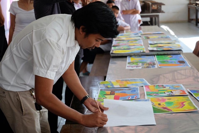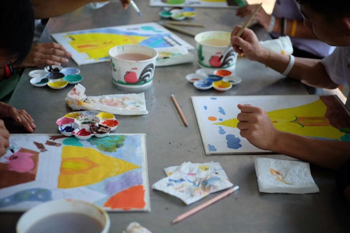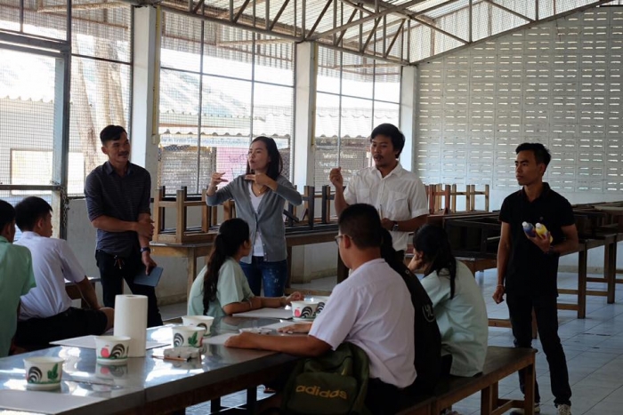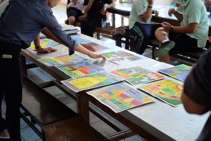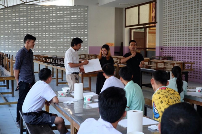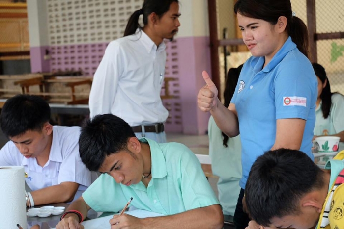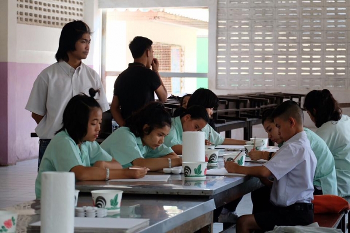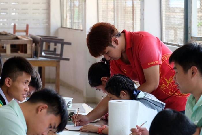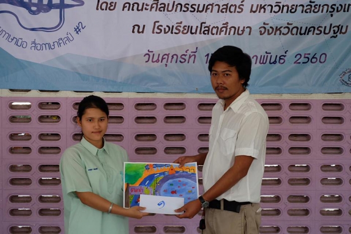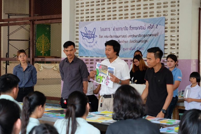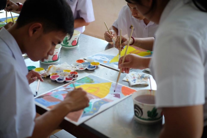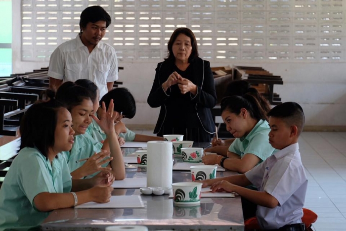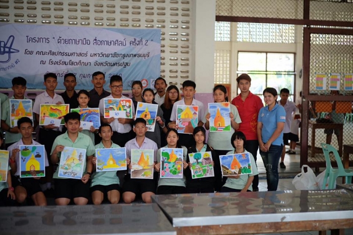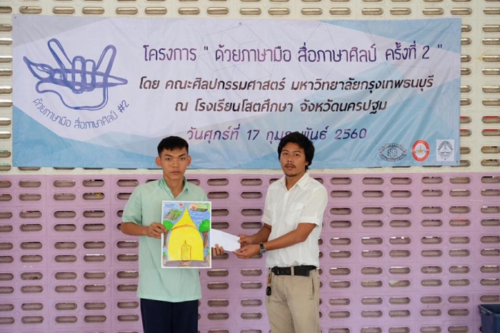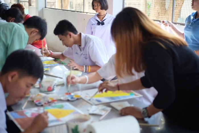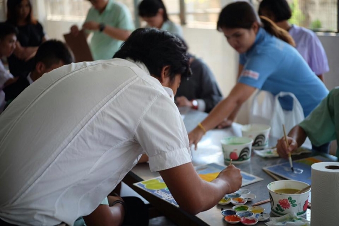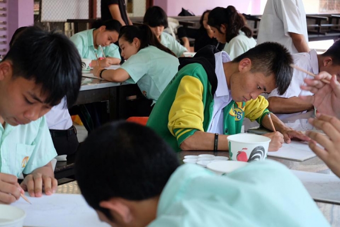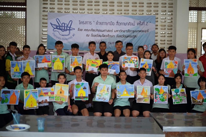 该项目旨在在佛统府视听学校的高中学生中,向有关绘画的讲习班传递知识。(有听力障碍耳聋的学生)