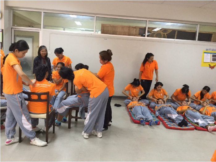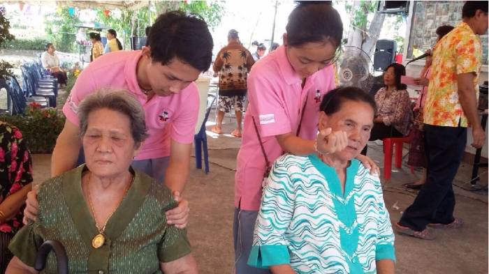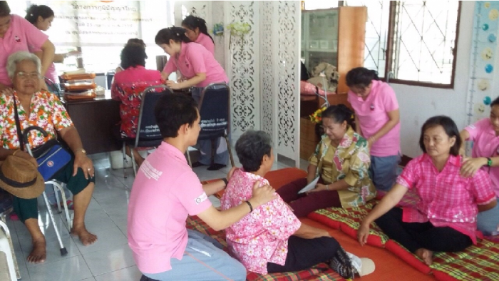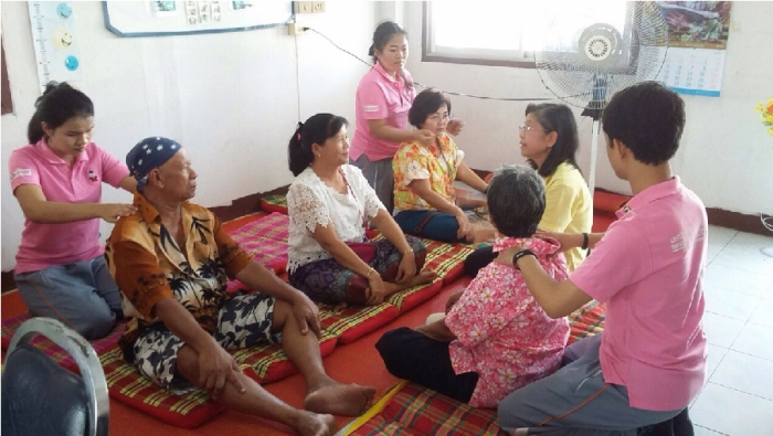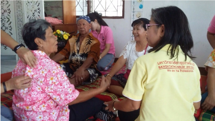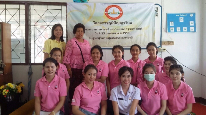 学年2015年护理学院 曼谷吞武里大学 于2016年4月23日在曼谷Thawi Watthana区Sin Phatthana Thani村举办了一个项目,通过放松按摩来促进手法,以提高泰国人的智慧。让学生保存泰国智慧 并提高意识以实现价值 还有泰国智慧的重要性 该项目被认为是进行和推广泰国智慧的项目