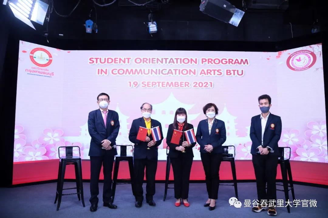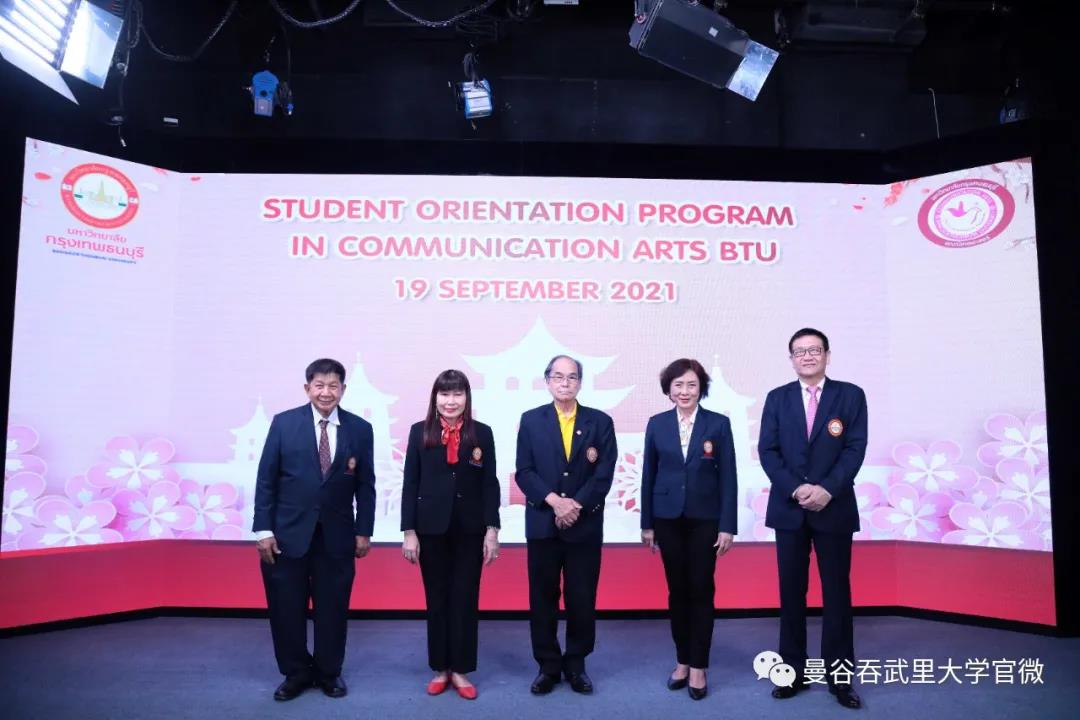 2021年9月19日,曼谷吞武里大学传媒学院迎新典礼在传媒大厅隆重举行。Chaiyong副校长、Sutatip助理校长、林栩助理校长、传媒学院Sukanya院长及各科任老师和传媒学院本硕博新生参加了本次活动。