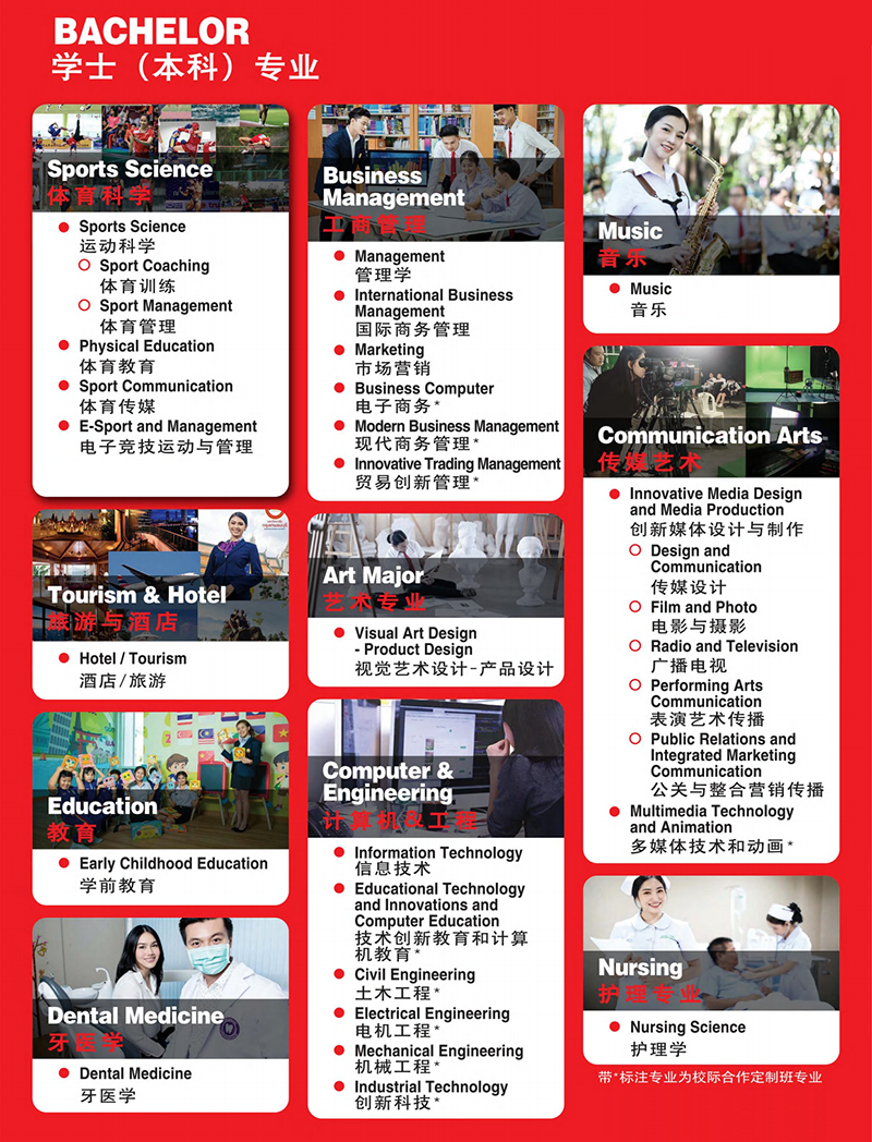 大学大学响应泰王国与中华人民共和国政府联合声明,加强各层次、各领域教育合作,目前已与中国十所高等院校合作。为中泰两国发展建设提供人才和智力支撑!